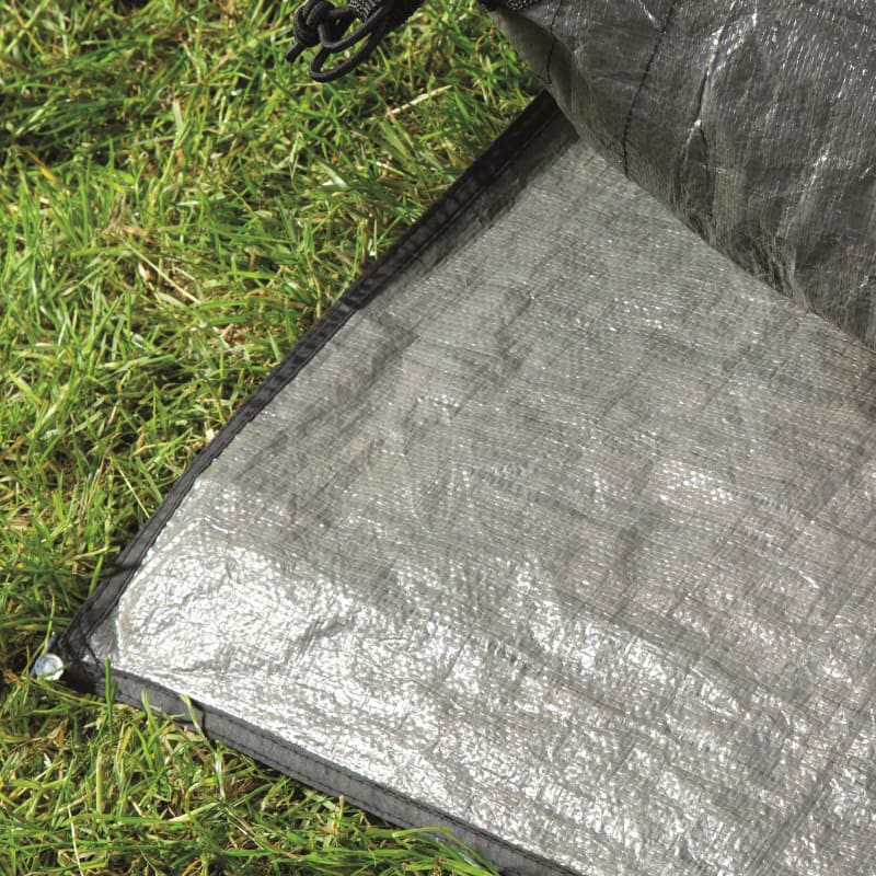 Footprint Montana 5p är ett tältgolv från Outwell som är skuret för att passa deras tältmodeller. Håller tältet rent och ger värmande isolering från den kalla marken.