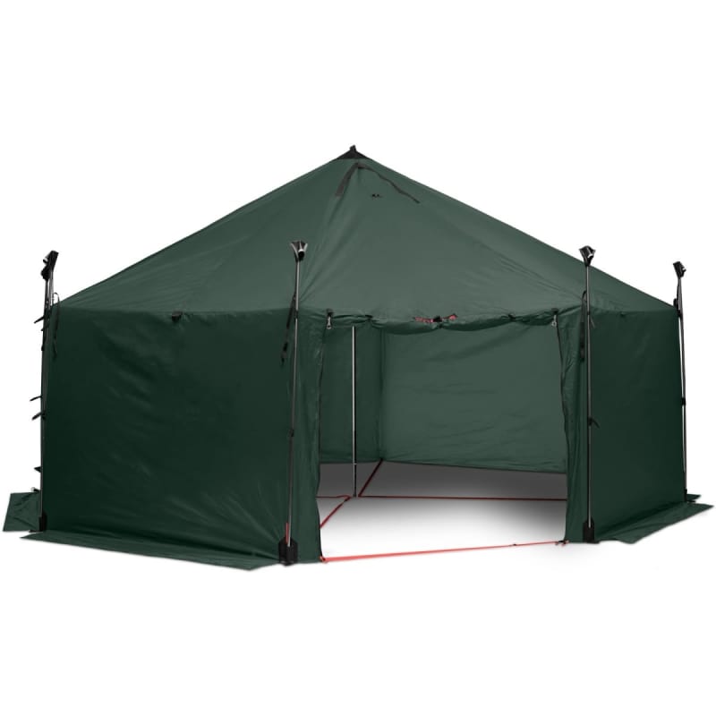 Altai UL i ultralätta Kerlon 1200-väv är den perfekta grupplösningen, för både långa och korta turer där låg vikt är viktigast.Altai har enkelväggsdesign, och kan även användas som tält eller skydd under en tur.Sovplats för 6 eller mer är helt klart inga problem, och sittplatser upp till 12 personer. Ståhöjd i mitten tack vare dess konstruktion med mittstång.Altai är mest lämpad för användning under trädgränsen och i skyddad terräng, men står även pall för hårt väder året runt.Vill man minska ner vikten under sin vandring, kan man med fördel använda sig av stavar, skidor eller liknande istället för de åtta sidostängerna som medföljer. Yta: 9,7 m² * Tältets utseende: Alla produktegenskaper och mått, däribland tältets vikt och stängernas längd, kan variera något jämfört med vad som anges. Sådana skillnader kan uppstå på grund av ändringar i konstruktions- och produktionsprocesser och/eller naturliga variationer i materialen. Vävfärgning har naturliga variationer, så den verkliga tältfärgen kan se lite annorlunda ut än vad som visas här på vår hemsida.För ett par år sedan bytte Hilleberg nyans till en mörkare på alla yttertältsfärger. Detta pga. att vävarna blir mer UV-beständiga ju mörkare tälten är, och det som sliter mest och bryter ner vävarna är just solen.