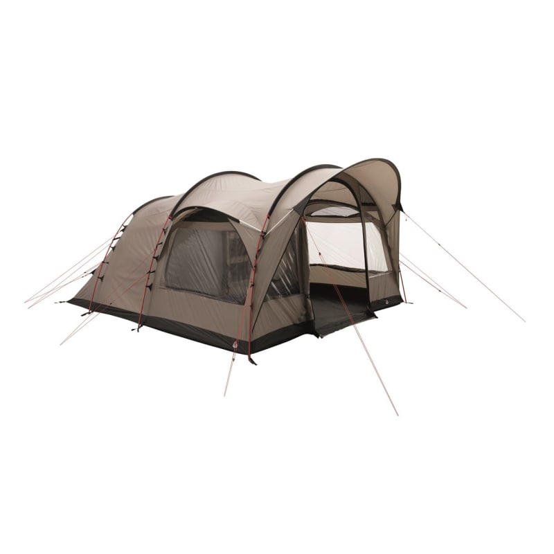Det rymliga Cabin 600 från Robens har sex sovplatser och en ny stångkonstruktion som gör att tältet står stabilt och går snabbt och enkelt att resa. Huvuddörren skyddas av ett väl tilltaget solskydd med sidopaneler. Stora ventiler förbättrar luftflödet och minskar kondensbildningen. Det universella innertältet med blixtlås ger olika alternativ för allrummet och är försett med mörkläggningstak som stänger ute ljus och bidrar till en god sömn.